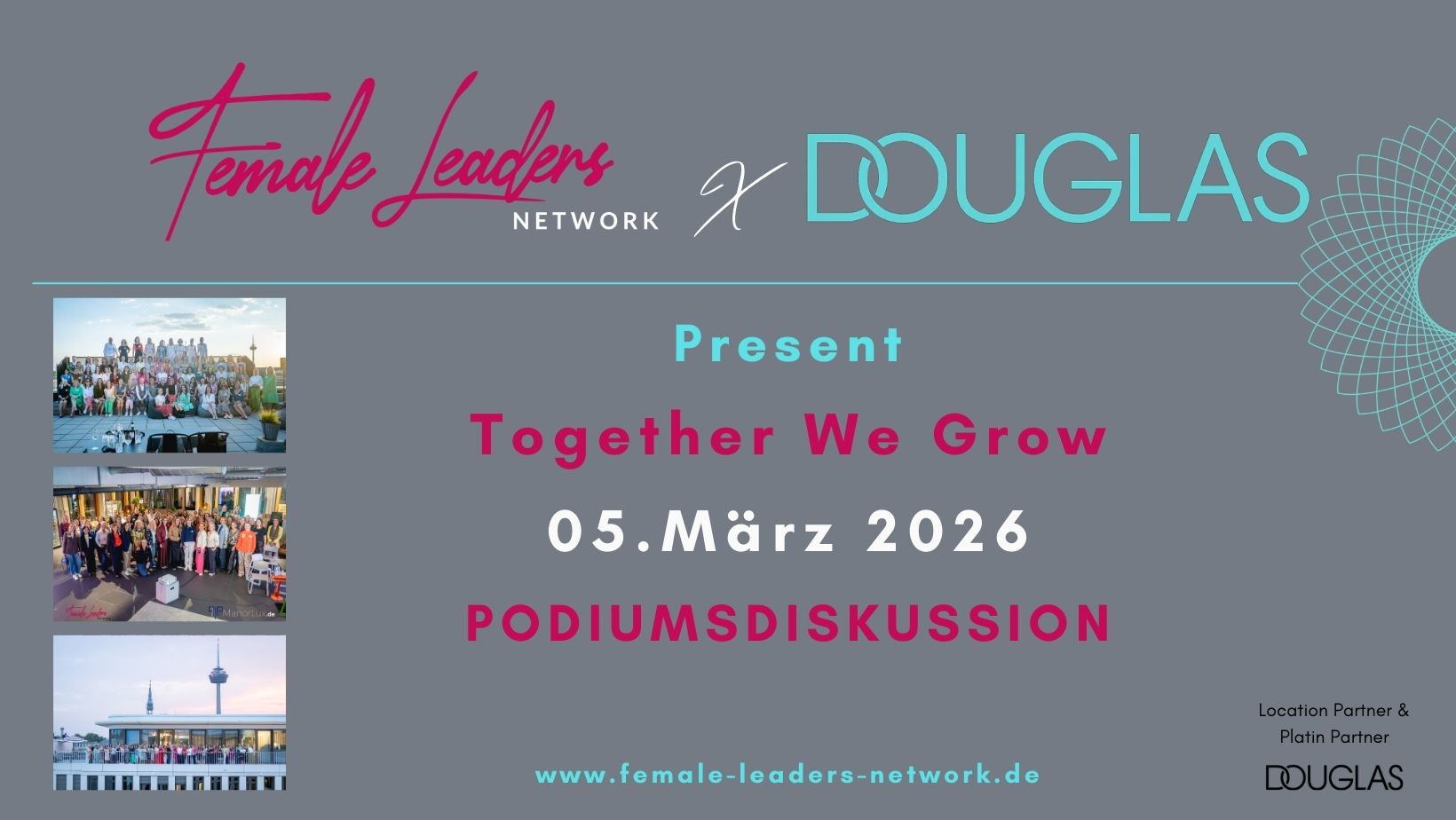 Gerne möchten wir bereits jetzt über unseren Jahresauftakt-Event am 5. März 2026 informieren, der gemeinsam mit unserem Platin-Partner Douglas im Douglas Headquarter in Düsseldorf stattfindet. Im Fokus stehen eine inspirierende Podiumsdiskussion, neue Perspektiven und der Austausch mit starken Führungsfrauen.